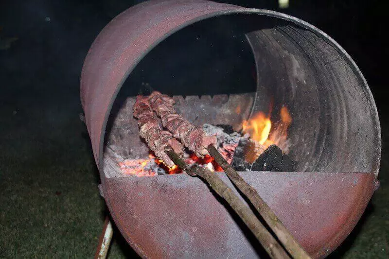 The meat is cut into cubes, seasoned with salt, pepper, garlic and laurel, and then grilled on the skeet of Laurel sticks. Despite the tradition of using a laurel stick as a skewers, in the restaurants are used iron or aluminum spikes.